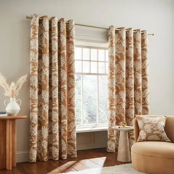 * Includes 2 x Curtain Panels* Luxurious, Floral Design* Made from Polyester* Fully Lined* Matching Cushion Available Make your house a home with the Dakota Embroidered Eyelet Curtains, your newest must-have. With a luxurious floral design and durable composition, they're guaranteed to add both style and practicality! Fully lined for your added privacy, there is also a matching cushion available to purchase separately - allowing you to create a chic, and cohesive, interior look.