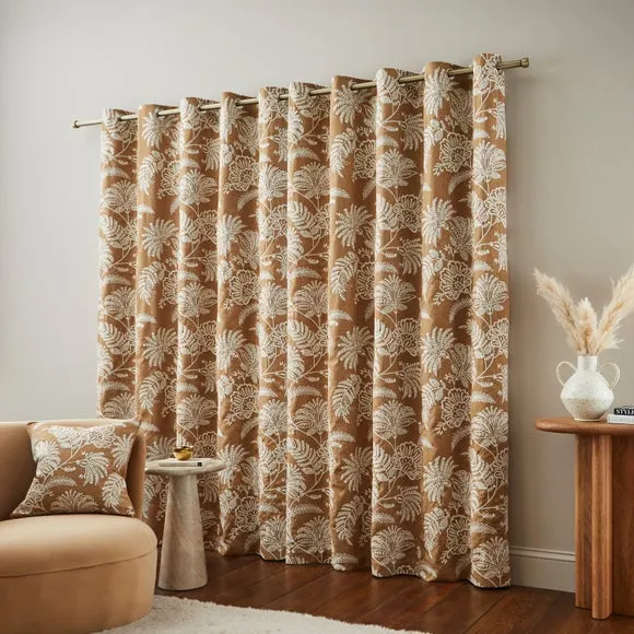 Embroidered Eyelet Curtains - Ochre, Polyester