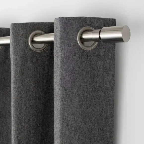 The extendable curtain pole offers convenient installation with its adjustable length feature, eliminating the need for cutting. Its barrel finials provide a simple yet stylish finish, while the metal construction ensures durability for lightweight to medium curtains. The pole includes brackets, fixings and instructions, and works specifically with eyelet curtains without requiring additional rings.