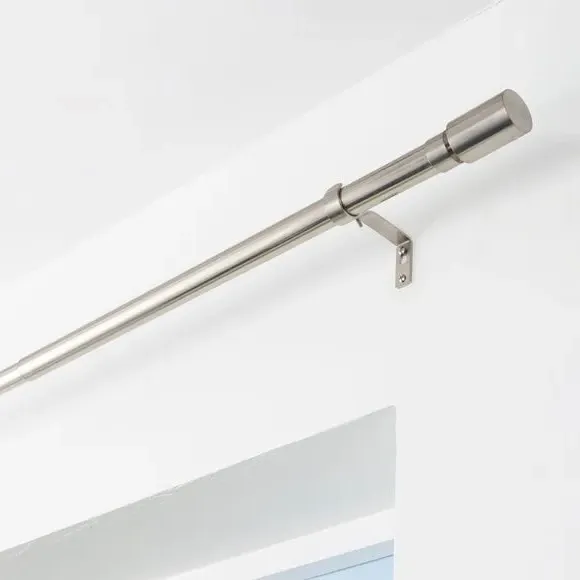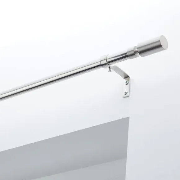 * Extendable metal curtain pole kit* Simple barrel finials* Brackets, fixings and instructions included* Rings not included - suitable for eyelet curtains* Easy to install, no need to cut down Extendable and crafted from metal, this curtain pole kit is made up of brackets, fixings and instructions with stylish and simple barrel finials, adding a welcoming touch to your living areas. Perfect for eyelet curtains, it is easy to install with no need to cut down, due to the extendable feature. Please note: the pole length stated does not include the finials. Please allow up to an additional 8cm to the pole length to accommodate the finials. Suitable for lightweight to medium curtains, including voiles and sheers. Rings not included.