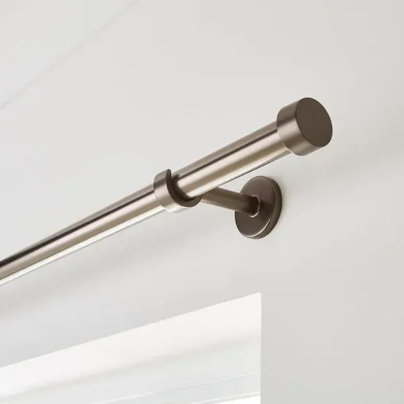 * Choice of colours & lengths, with extendable and fixed options available* Choice of diameters* Simple stud finials* Brackets, fixings and instructions included With a choice of colours, lengths, and ring options, you're sure to find a Trinity pole that suits your needs. Made from metal and complete with simple yet stylish stud finials our Trinity pole will bring a sophisticated look to your living area. This pole is supplied with all fixings and instructions included for easy installation. Please note:* The pole length stated does not include the finials. Please allow up to an additional 3cm to the pole length to accommodate the finials.* Fixed curtain poles in lengths of 240cm and above come in two lengths with a joiner.* For poles with rings included, the quantity of rings supplied is based on the industry standard of 1 ring per every 10cm.* Suitable for lightweight to medium curtains, including voiles and sheers.* Includes an extendable 'Quick Fit Bracket' which makes for a quick and easy installation.* Rings not included.