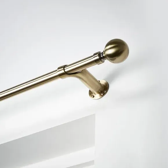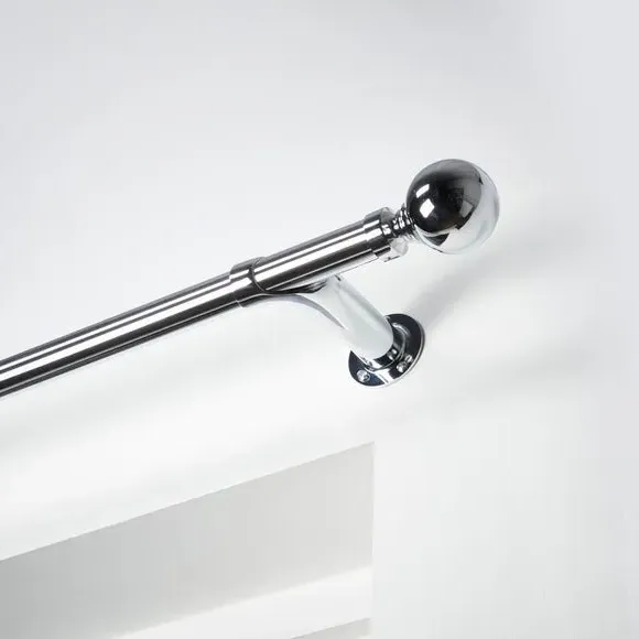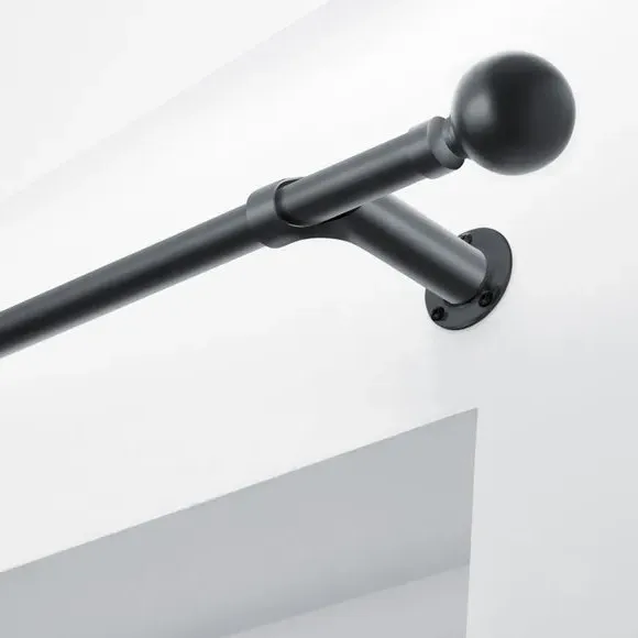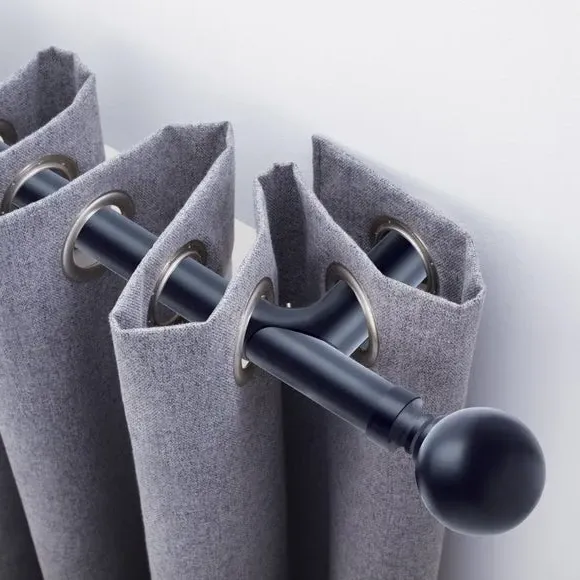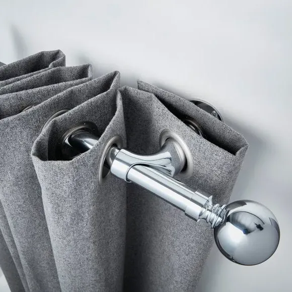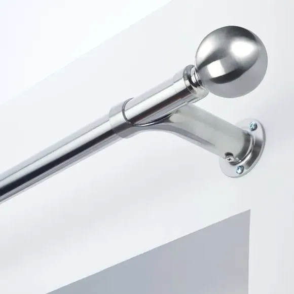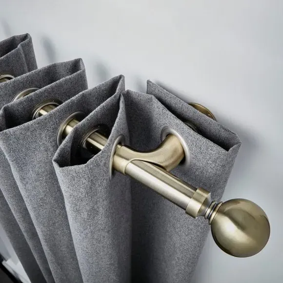 * Metal Extendable Eyelet Room Darkening Pole Kit with Finials* Designed to reduce light from the sides of the window* Rings not included - Installation recommended with blackout eyelet curtains to maximise light reduction.* Brackets, fixings and instructions included* Alternate colours available* Exclusive to Dunelm* Room darkening poles may also help to increase insulation, by reducing any draught coming from the window sides. Perfect for ensuring a great night's sleep, the innovative and extendable Ashton curtain pole features a curved design to maximize light block at the sides of your window by returning curtains to the wall. This specially designed pole is ideally used with blackout eyelet curtains to ensure optimal results. Styled in a choice of sophisticated finishes, this curtain pole is available in a range of sizes to suit your requirements. Disclaimer: This pole can be cut to size and the finials can be removed. Please note: the pole length stated does not include the finials. Please allow up to an additional 9cm to the pole length to accommodate the finials.