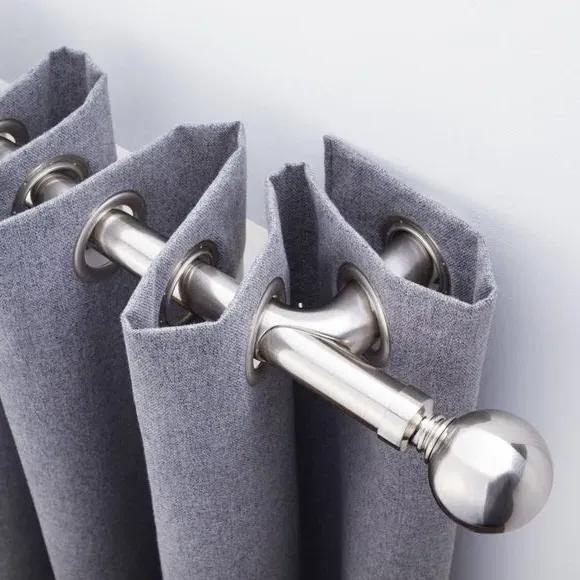 The extendable curtain pole features a curved design that reduces light from window sides by returning curtains to the wall. Its metal construction provides durability, while the eyelet compatibility works with blackout curtains for optimal light reduction. The extendable mechanism allows custom sizing, and the included brackets ensure secure wall mounting.