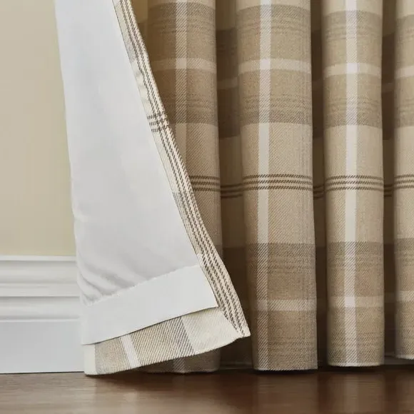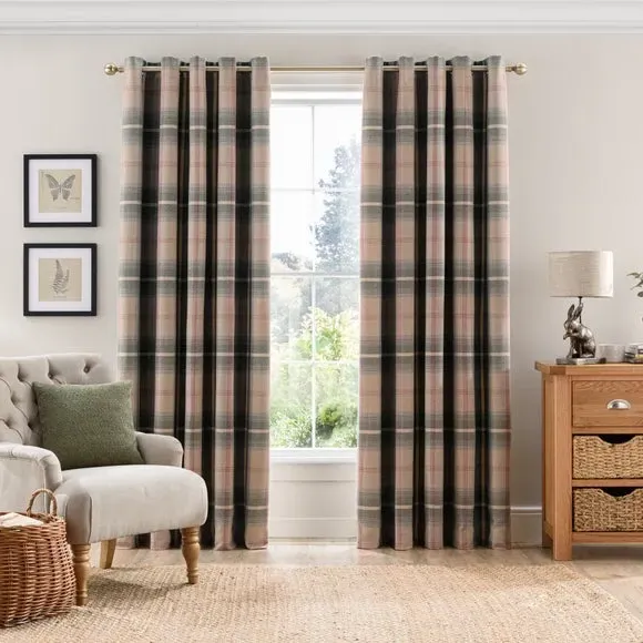 * 1 pair - includes 2x curtain panels* Textured tartan check face fabric* Fully lined* Eyelet header* Available in a choice of colours and sizes The Highland Check eyelet curtains from our Luxury collection are perfect for bringing a sophisticated edge to your home, made from a luxurious heavyweight yarn to create a beautiful brushed textured finish. These curtains are decorated with a timeless tartan check design and are available in a range of colourways to effortlessly complement a variety of decorative styles. Fully lined for improved insulation and a fuller drape, these curtains are completed with a modern eyelet header for easy installation and smooth movement across your curtain pole. Designed to effortlessly transition with your décor without ageing a day and are fashioned from durable materials for improved longevity. For even more insulation against summer heat or winter cold, choose our thermal blackout lining for an even better insulating effect. The size of the curtains shown is the size of 1 panel, you will receive 2 panels of this size. Choose the width that is closest to your pole length for full look. Professional cleaning in Hydrocarbon or equivalent recommended.