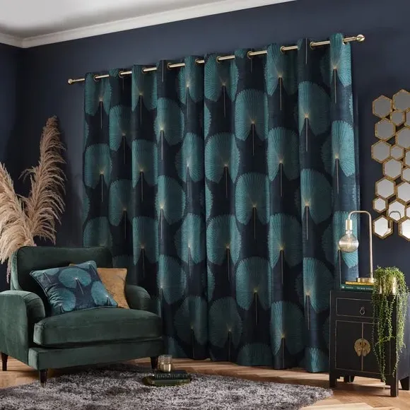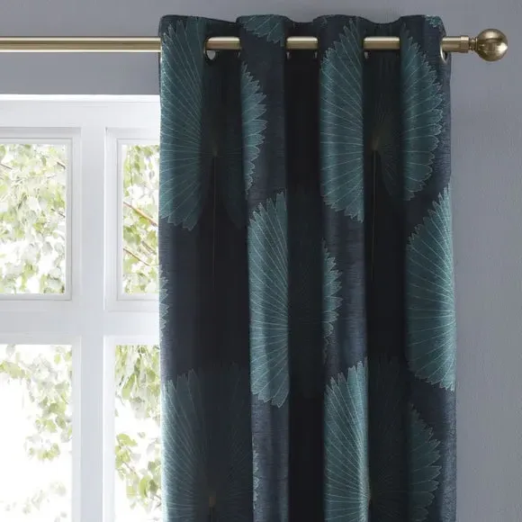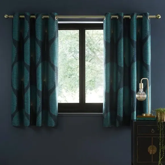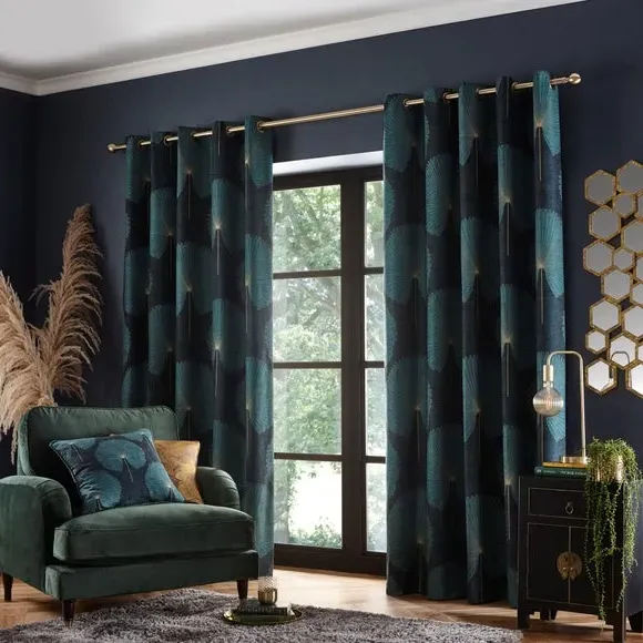 * Includes 2 x curtain panels* Modern geometric design* Polyester lining to preserve face fabric* Smart eyelet header This pair of curtains features an elegant, geometric fan design which will perfectly enhance your home interior. The polyester lining will help preserve the design and front fabric from fading, making these curtains long-lasting. Complete with a smart eyelet header, these curtains are designed for use with a curtain pole. Coordinate the curtains with the matching cushion for a stylish room look.**Please note:** Pattern matching can not be guaranteed across multiple pairs of curtains. This collection is verified by OEKO-TEX and independently tested for harmful substances as well as manufactured using sustainable processes under socially responsible working conditions.