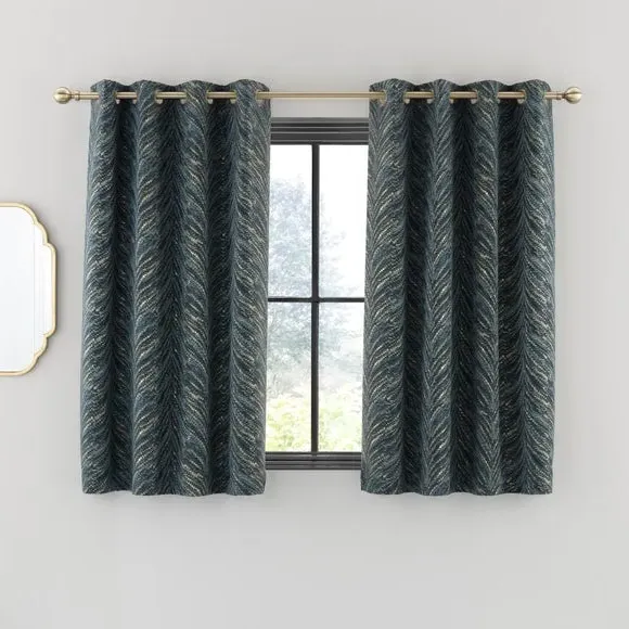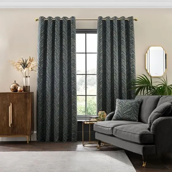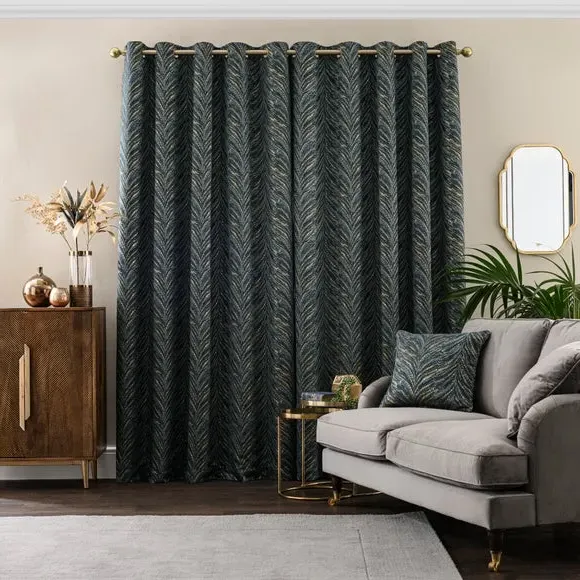 The curtains feature a stunning feathered design with modern eyelet headers that glide smoothly onto curtain rods. Crafted from recycled material, these fully lined curtains provide enhanced privacy while improving insulation to keep homes comfortable year-round. The eyelet construction allows for easy opening and closing, and the lining reduces external noise for a more peaceful environment. Each pair includes two panels with matching cushion covers available separately.