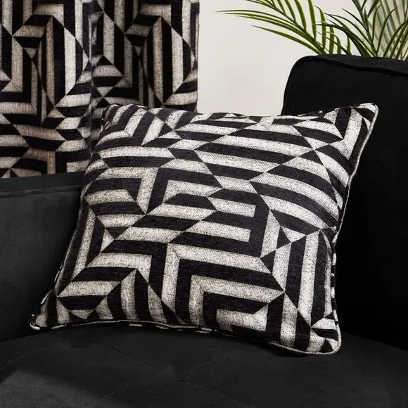 * Includes 2 x curtain panels* Bold Geometric pattern* Chenille Jacquard face fabric* Contains recycled materials* Fully lined* Matching cushion available Immerse yourself in modern elegance with the Shoreditch curtain collection, showcasing a striking geometric motif on luxurious chenille jacquard fabric, ideal for creating a focal point in any room. Revel in superior quality and privacy courtesy of complete lining and easy-to-hang eyelet headers. Crafted entirely from heavy weight materials, these curtains exude luxury and style. Made in various sizes, they grant you the freedom to personalise your home decor effortlessly.