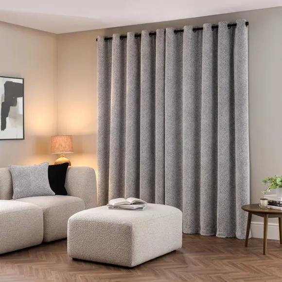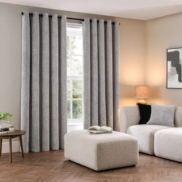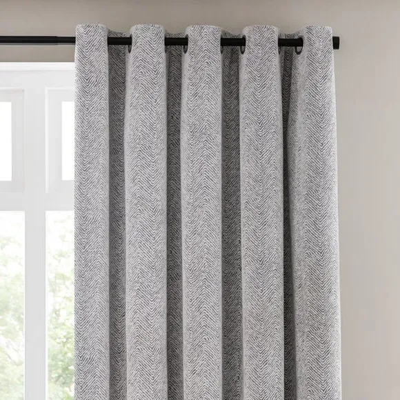 Home  /  Bedding & Textile  /  Curtains  /  Eyelet Curtains with Herringbone - Silver, Chenille
