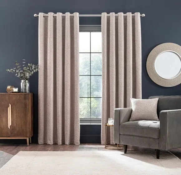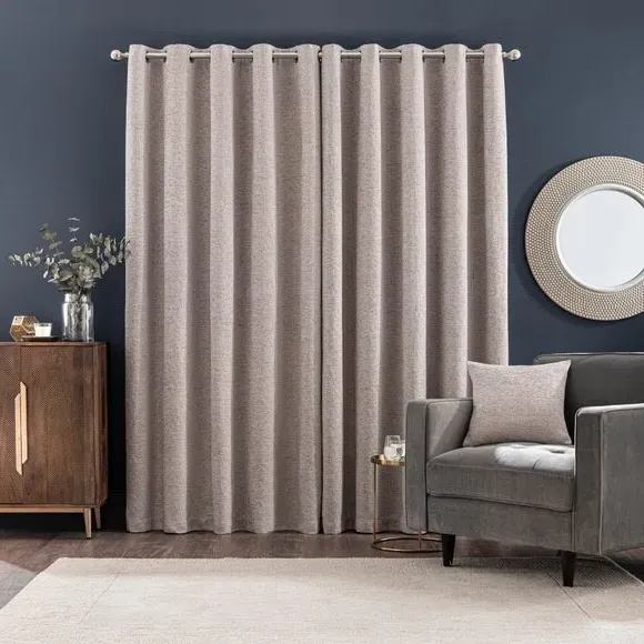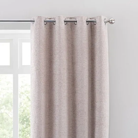 * Includes 2 x curtain panels* Quality, durable materials* Contains 35% recycled polyester* Luxurious soft feel* Lined with 100% recycled polyester Crafted from quality durable materials, this pair of curtains is suitable to compliment all types of home decors. The fabric contains 35% recycled polyester to help make the planet's resources go a bit further. Complete with a modern eyelet header ideal to create elegant folds and allow easy installation, these curtains feature a chenille texture with a luxuriously soft feel. Available in a range of widths and drops, our textured chenille curtains are fully lined with a 100% recycled polyester lining for added privacy. Matching accessories available to buy separately.