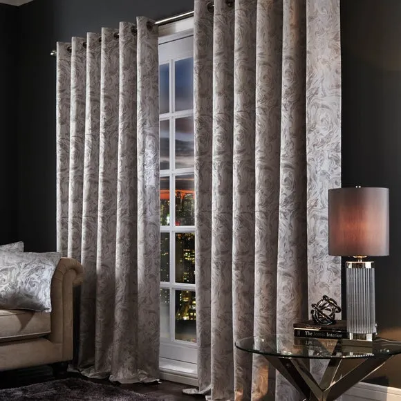 * Includes 2 x curtain panels Featuring a stylish marbled effect weave, this pair of Diablo curtains are fully lined for a luxurious quality finish and are complete with a modern eyelet header. Available in a selection of widths and drops to suit your requirements. Due to the nature of this design, multiple purchases of this product may not pattern match Please note: these curtains are sold as a pair.
