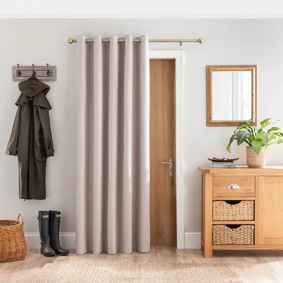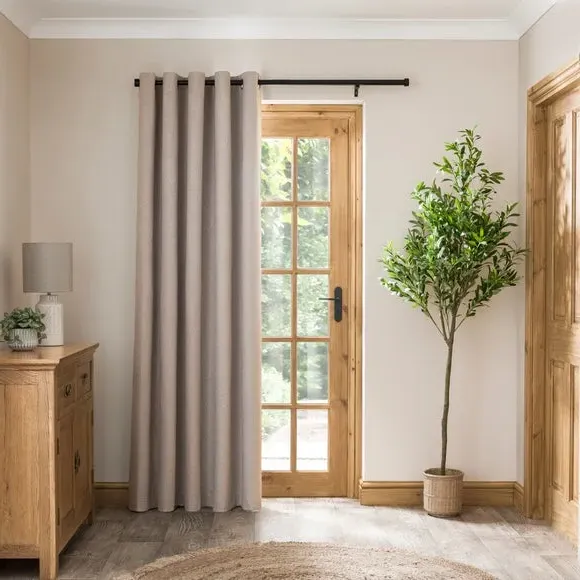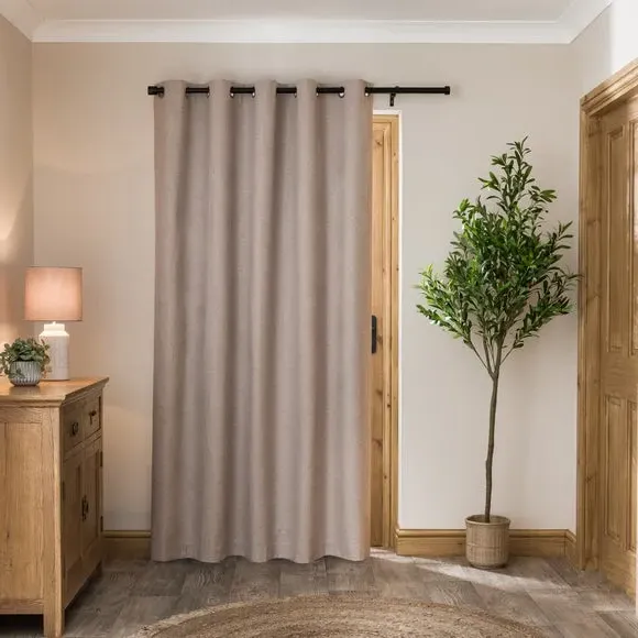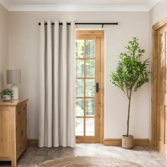 * Includes 1x door panel* Soft brushed luna fabric* Blackout coating to keep out external light* Thermal properties to help regulate room temperature* Eyelet header* Available in a choice of colours and sizes Help keep the cold out in the winter, and unwanted light out in the summer with our Luna Brushed Blackout Eyelet Door Curtain. This eyelet door curtain is designed to provide an extra layer of protection for doors that meet your needs - whether you just want your curtains to block external light, or need an all-round privacy screen, this door curtain can do it!