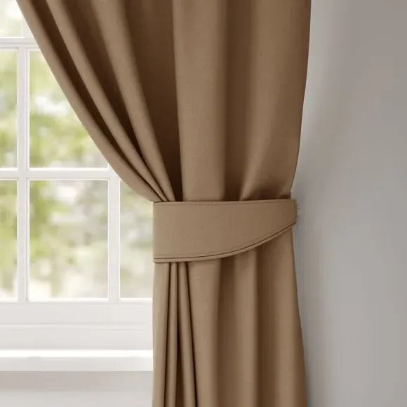 The curtain tieback offers fire-retardant safety with its BS5867 compliant fabric, featuring a textured pattern design. Its plain or piped edge options provide customisation flexibility, while the single tieback construction ensures neat curtain styling. The fabric meets Type B and Type C fire safety standards, and the UK-made construction adds quality assurance.