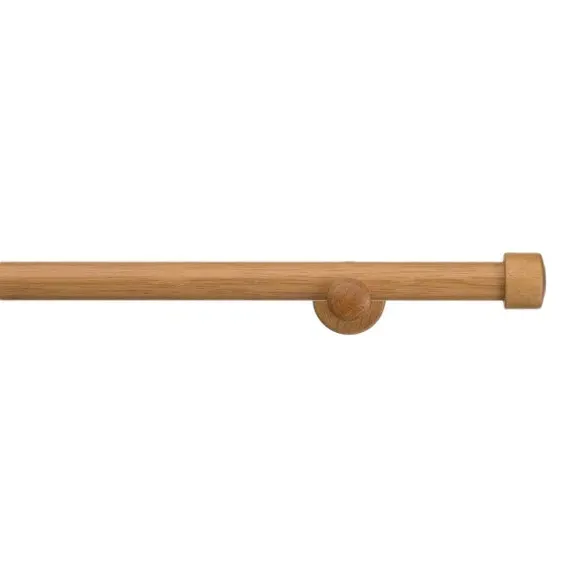 The curtain pole combines strength with its durable wood construction and mid oak finish. Its 28mm diameter supports eyelet curtains effectively, while the contemporary stud finials add a refined touch. The pole includes tunnel brackets and all necessary fixtures, with the option to cut down to your required length.