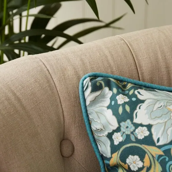 The curtains feature botanical prints across a verdant green backdrop with brushed silver eyelet headers. Made from 100% cotton face fabric, they combine Arts & Crafts styling with contemporary appeal. The eyelet design provides easy hanging and smooth operation, while the floral motifs add natural charm. Available in 9 sizes with matching cushions for coordinated styling.