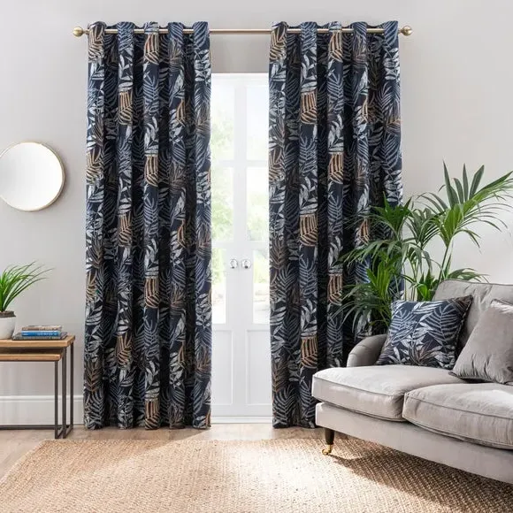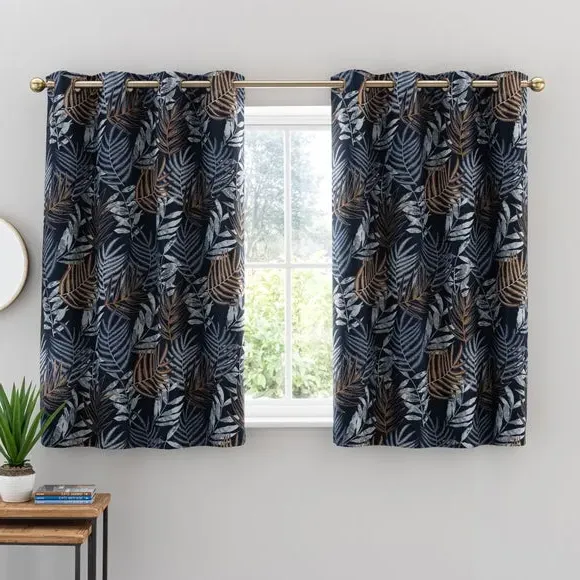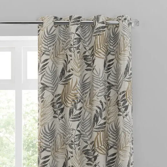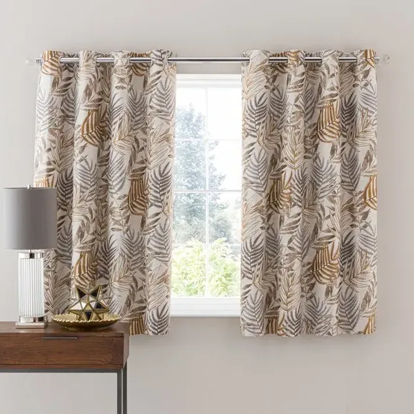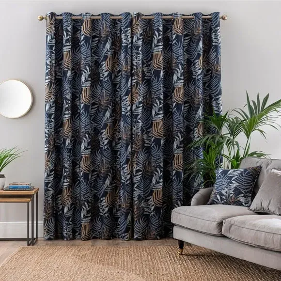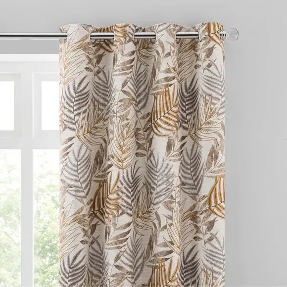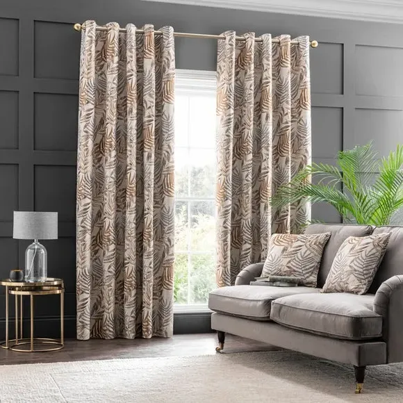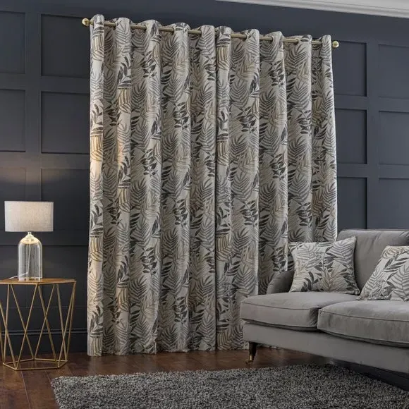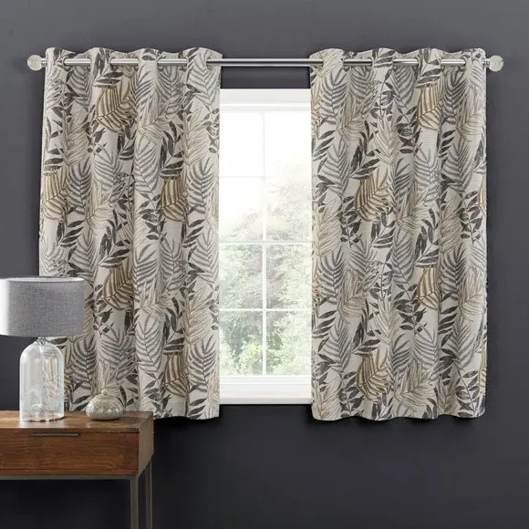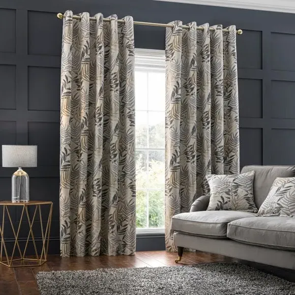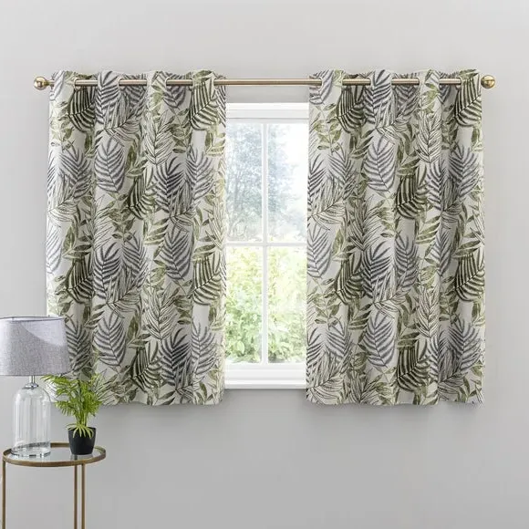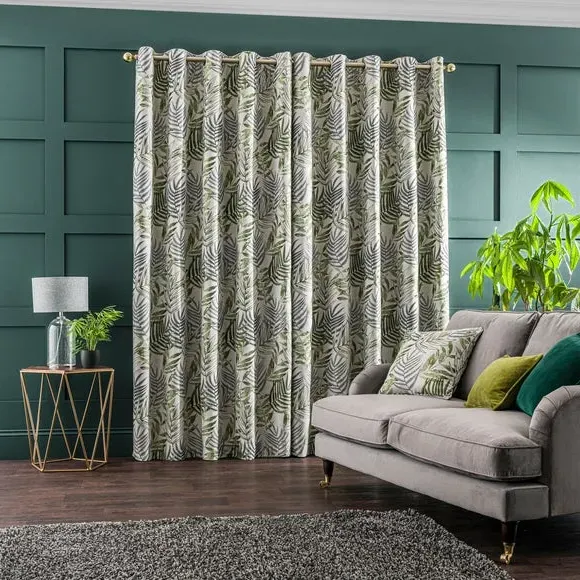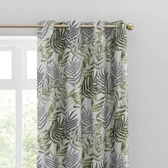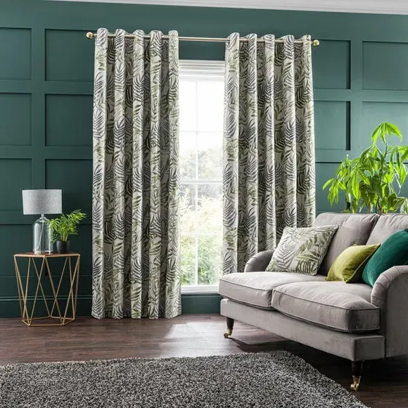 * 1 pair - includes 2x curtain panels* Luxurious jacquard face fabric* Fully lined* Eyelet header* Choice of colours and sizes If you love fresh designs, add some leafy simplicity to your home with our Leaf Jacquard Eyelet Curtains. Unique and versatile, these curtains are available in an array of colours so you can mix and match across the house. Beautifully soft to the touch and made with a quality polyester fabric. These curtains are easy to hang, thanks to the modern eyelet heading and full lining for added insulation and privacy. Available in a wide range of sizes for optimum fit. Don't forget to add the coordinating cushion, available to purchase separately. The size of the curtains shown is the size of 1 panel, you will receive 2 panels of this size. Choose the width that is closest to your pole length for full look.