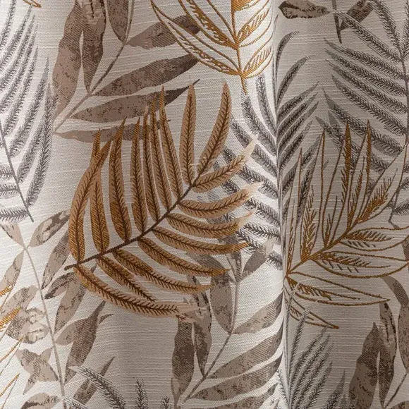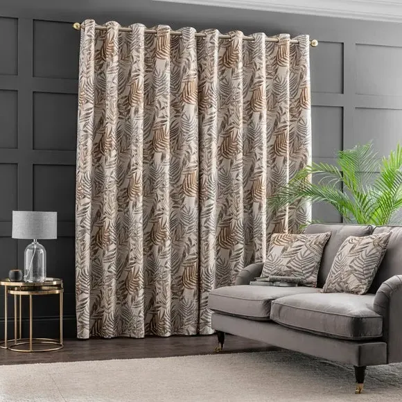 The curtains feature luxurious jacquard fabric with a distinctive leaf pattern, accented by modern eyelet headers. The fully lined construction provides enhanced insulation and privacy, while the soft polyester material adds durability and easy maintenance. Each pair includes two panels with eyelet headers that suit standard curtain poles, and the quality construction ensures long-lasting performance.