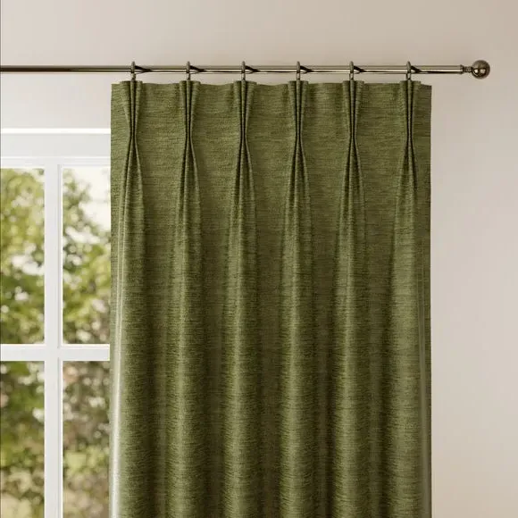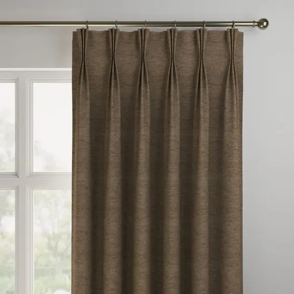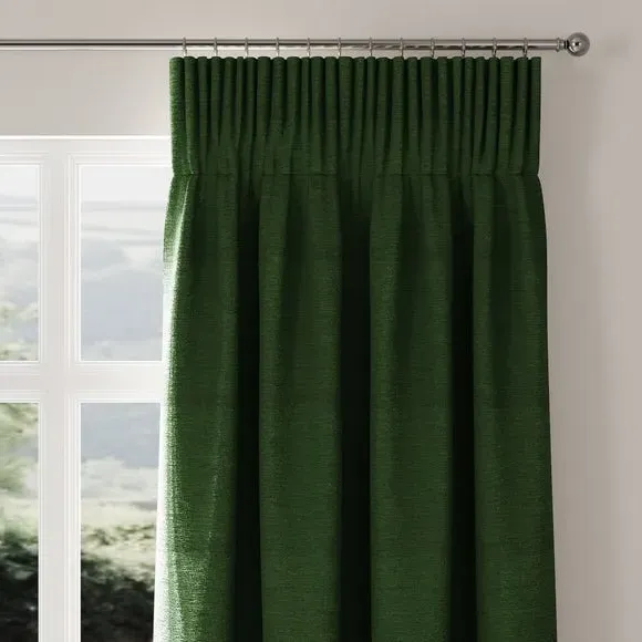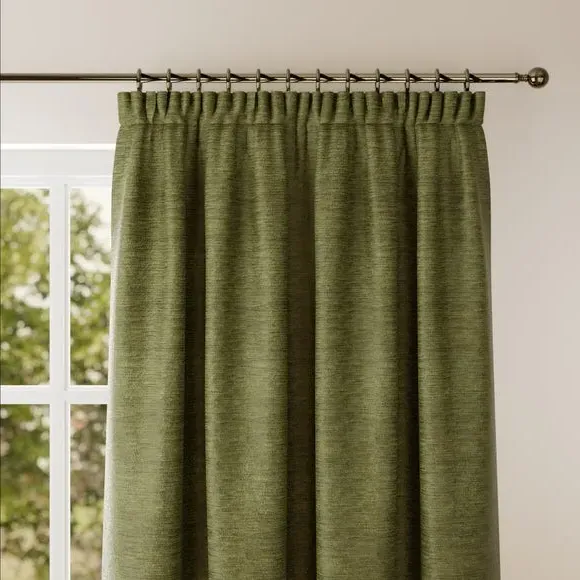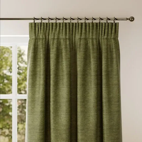 * Premium Chenille composition* Selection of header types available* Choice of linings options available* Made to your measurements! Made from high-quality chenille material, this fabric offers a soft and plush texture that adds warmth and cosiness to your home. The modern design gives a feeling of elegance to your living space, making it a versatile choice for various interior styles.**Choosing your lining:**Blackout provides minimal light disturbance in your home making it perfect for bedrooms. Thermal helps to keep the warmth in and the cool air out meaning it’s great for family rooms or lounges. Our Standard Lining is perfect if you like the glow of natural light whilst your curtains are closed whilst still maintaining your privacy. Please note: you measure for pinch pleat curtains in the same way as pencil pleat curtains Please note: If your measured width is over 124cm your curtains will come with a fabric join to provide the full width required.