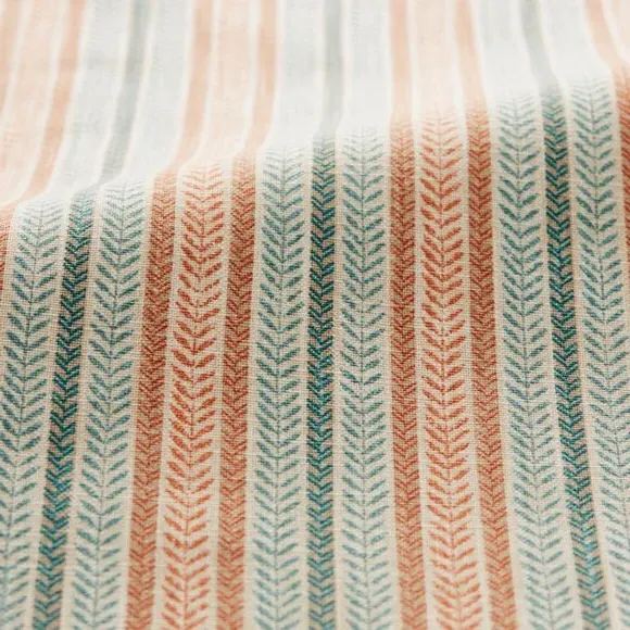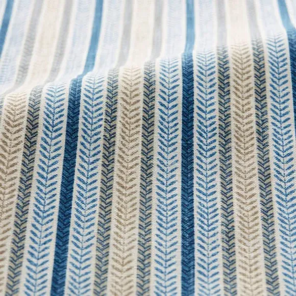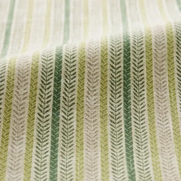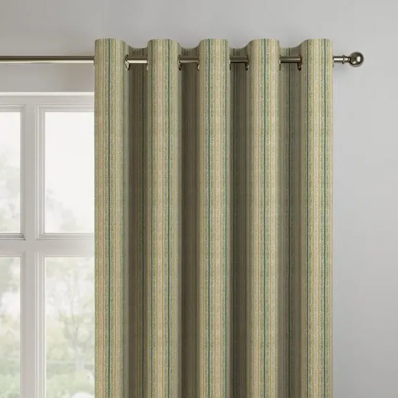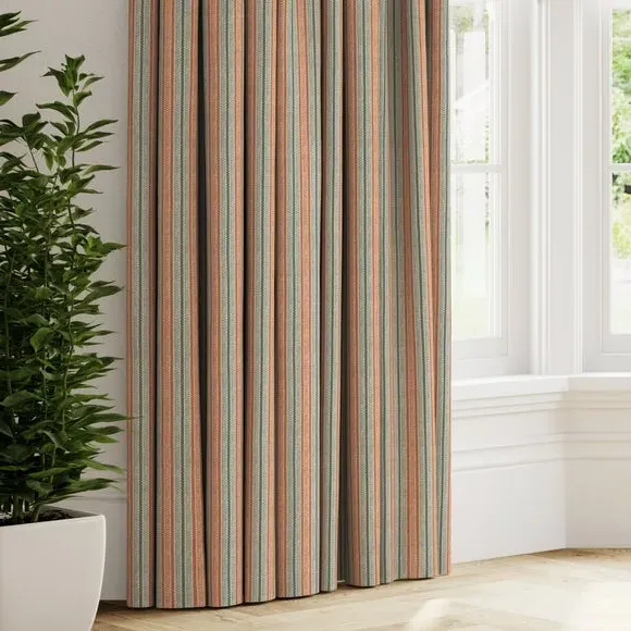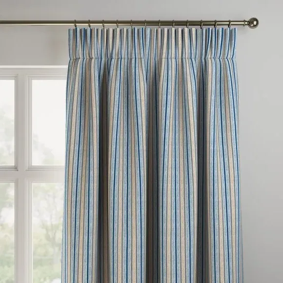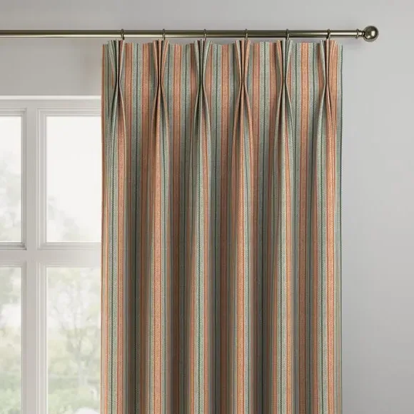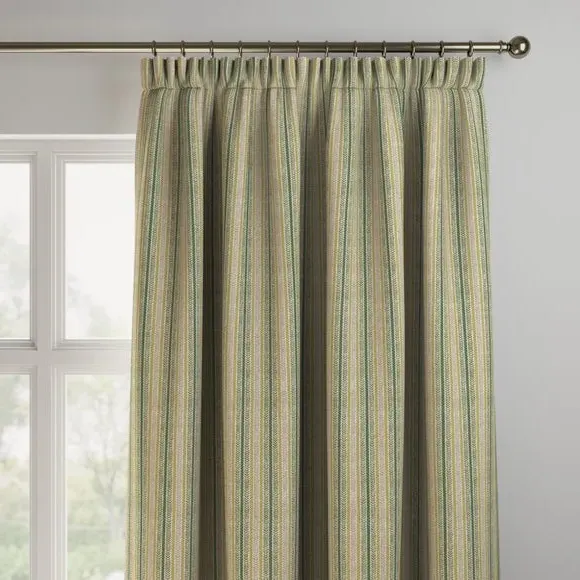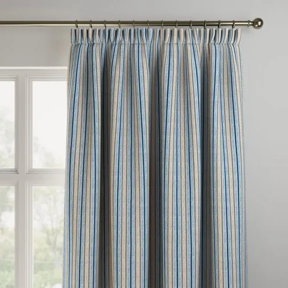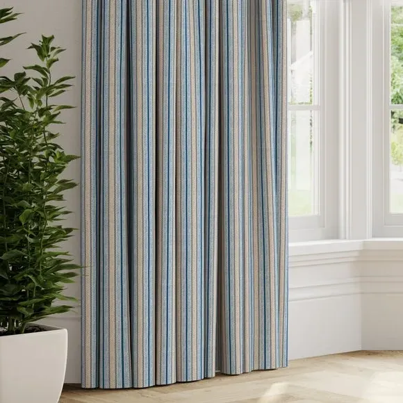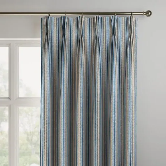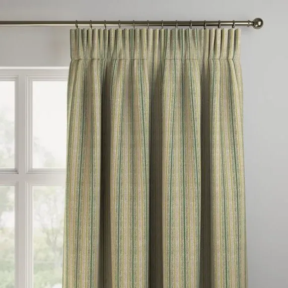 * Made with sustainable materials - 100% recycled polyester* Selection of header types available* Choice of linings options available* Made to your measurements!* Sold as a pair Add a traditional touch to your interior with this 100%cotton fabric, featuring a timeless striped design that exudes classic elegance. The soft colour palette brings a sense of calmness and sophistication to your decor.**Choosing your lining:**Blackout provides minimal light disturbance in your home making it perfect for bedrooms. Thermal helps to keep the warmth in and the cool air out meaning it’s great for family rooms or lounges. Our Standard Lining is perfect if you like the glow of natural light whilst your curtains are closed whilst still maintaining your privacy. Please note: you measure for pinch pleat curtains in the same way as pencil pleat curtains. Please note: If your measured width is over 124cm your curtains will come with a fabric join to provide the full width required.
