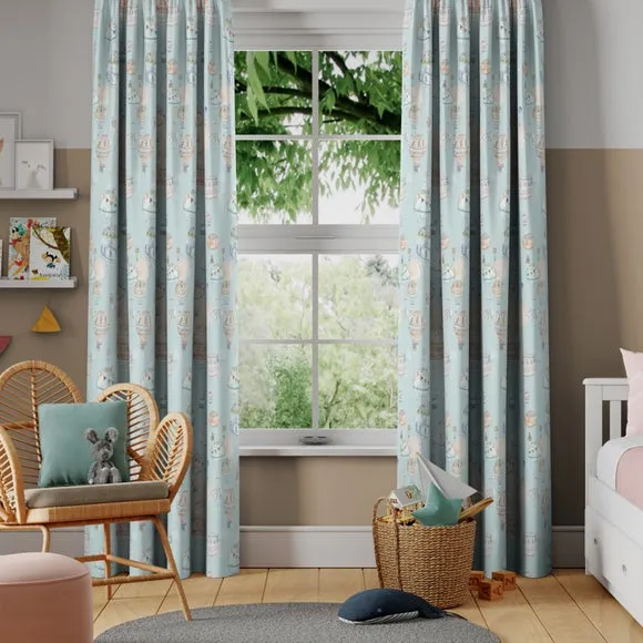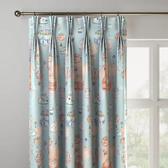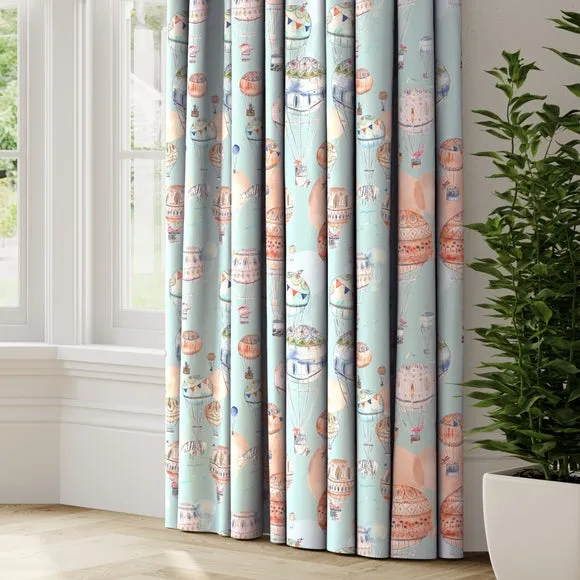 The playful and creative watercolour hot air balloon design of this fabric is wonderfully colourful and digitally printed on 100% cotton. The hot air balloon floats upon a fresh blue ground, inspiring a calming and joyful atmosphere sure to brighten up any room with its wonderful watercolour patterns. Our Web Exclusive Little Adventurers range features 5 playful, unique designs for curtains, upon a 100% cotton fabric base, and includes a wide range of styles. Introducing imagination and creativity into your décor, with designs like Zoo, Unicorn, Jurassic and Hot Air Balloon, will inspire younger minds, and create unique, playful spaces in any room. 100% natural fibres like cotton are kinder to the environment, as well as to our skin, being naturally hypoallergenic, meaning they are ideal for sensitive and allergy-prone skin, as well as having unique anti-bacterial qualities. You can feel confident that our Little Adventurers’ range will be gentle to the environment and inspire the minds of those who find stories within their designs. Please note: you measure for pinch pleat curtains in the same way as pencil pleat curtains**Online Only:**This product is only available to order online. Our expert virtual consultants can provide advice on measuring/fitting and style tips and our free samples can be ordered online to be delivered straight to your home to help you choose a fabric that's right for you. Once you're happy, simply place your order online and we'll do the rest. Please note: If your measured width is over 124cm your curtains will come with a fabric join to provide the full width required.