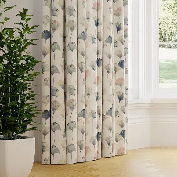 The curtains feature an elegant floral design with custom sizing to fit your windows precisely. Each panel offers pinch pleat or pencil pleat heading options, while the blush colorway adds warmth to any space. The made-to-measure service ensures a tailored fit, and panels wider than 124cm include fabric joins for full coverage.