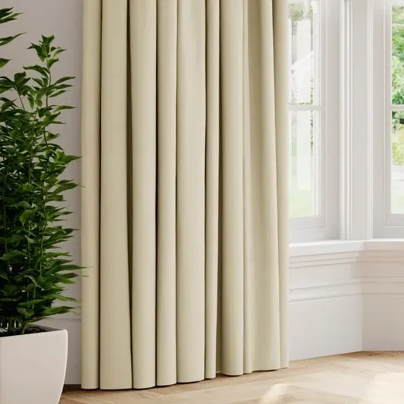 The curtains offer durable construction with their heavy 100% cotton composition, featuring a plain design that hangs neatly without creasing. Multiple header options including pencil pleat, eyelet, and pinch pleat provide tailored styling, while the choice of regular, blackout, or thermal linings adds enhanced functionality. The breathable cotton fabric ensures lasting quality and comfort. Available with coordinating items for a complete look.