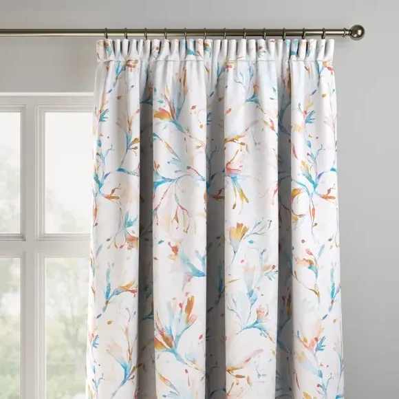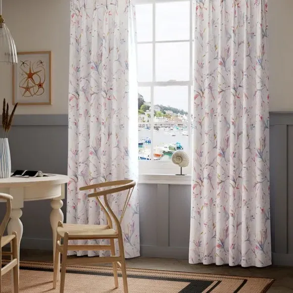 The curtains offer coastal charm with their seaweed design, crafted from 100% cotton in the UK. Multiple header types provide versatile hanging options, while various lining choices enhance light control and insulation. The made-to-measure service ensures a custom fit, and the curtains are sold as a pair for complete window coverage.