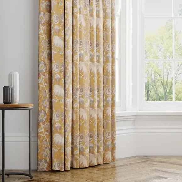 The curtains feature a traditional floral print design with customizable lining options to suit different needs. Blackout lining provides minimal light disturbance, while thermal lining helps regulate temperature by keeping warmth in and cool air out. Standard lining maintains privacy while allowing natural light to filter through. The made-to-measure construction ensures a precise fit, with fabric joins added for widths over 124cm to achieve the required coverage.