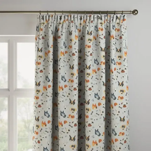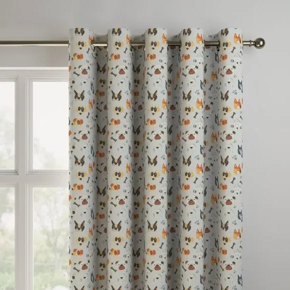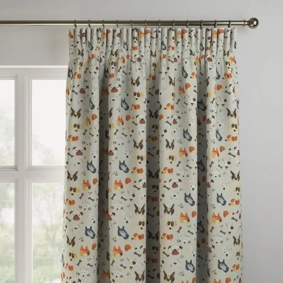 These Portrait Pups made to measure curtains features a fun and quirky animated dog design. This 100% cotton, web exclusive design can't be found in stores!**Choosing your lining:*** Blackout provides minimal light disturbance in your home making it perfect for bedrooms.* Thermal helps to keep the warmth in and the cool air out meaning it’s great for family rooms or lounges.* Our Standard Lining is perfect if you like the glow of natural light whilst your curtains are closed whilst still maintaining your privacy.**Online Only**: This product is only available to order online. Our expert virtual consultants can provide advice on measuring/fitting and style tips and our free samples can be ordered online to be delivered straight to your home to help you choose a fabric that's right for you. Once you're happy, simply place your order online and we'll do the rest. Please note: If your measured width is over 124cm your curtains will come with a fabric join to provide the full width required.