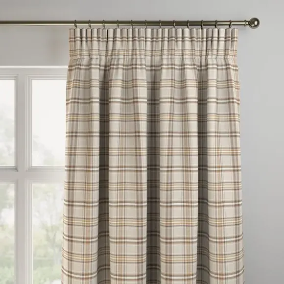 * Fire retardant fabric and lining (complies to BS5867 Section 2, Type B & Type C)* Lining – 100% Polyester* Selection of header types available* Made to your individual measurements* Suitable for Domestic, Hospitality, Workspace and Healthcare Environments** Checked design* Made in the UK Discover sophistication with our Esk Checked Patterned Made to Measure Curtains. Immerse your space in the natural look and feel of these curtains, expertly crafted from fire-retardant fabric and lining, ensuring impeccable drape and quality. Individually tailored to your unique measurements and showcasing a contemporary checked design, they effortlessly introduce a touch of modern elegance to any setting. Embrace a cosy and timeless ambience with Esk checked curtains, featuring a classic check in a rich colour palette that adds a great touch to any room setting. Choose from various header types to customise your style – these curtains are not only visually striking but are also crafted for commercial use. These made to measure curtains are available in a range of colourways to choose from, so you might be spoilt for choice! Proudly made in the UK, they redefine quality and craftsmanship. Available in a range of headers, these bespoke made curtains can be paired with our matching Made to Order tiebacks and cushion covers to give your home, office or commercial space a beautifully coordinated finish. Book an appointment with one of our expert consultants who will guide you through the process of creating your very own Made to Measure Curtains.*If you are unsure on testing requirements for your chosen environment, check with a qualified fire officer what testing is required and that this meets your needs. Suitable for domestic or commercial use. Please note that the guarantees shown are for domestic, non-commercial use only. Please note: If your measured width is over 124cm your curtains will come with a fabric join to provide the full width required.