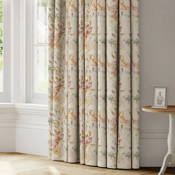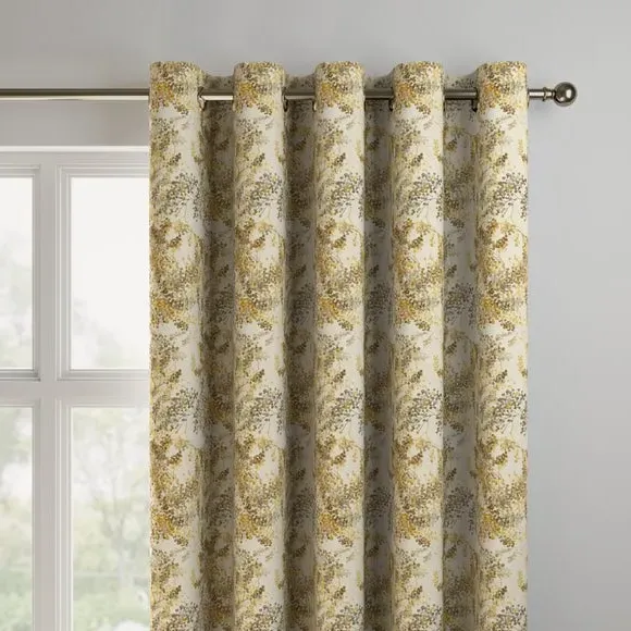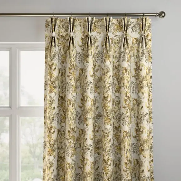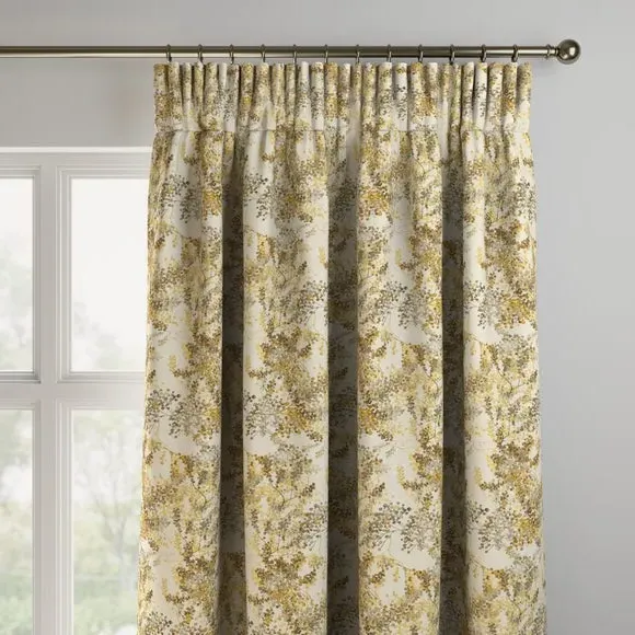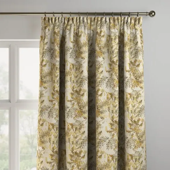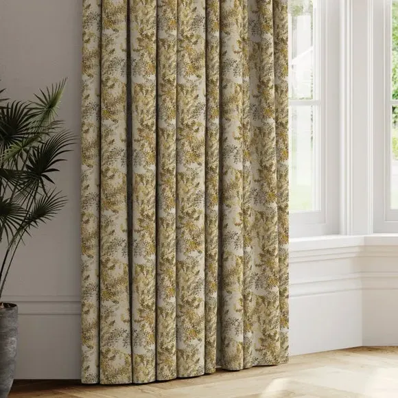 The curtains feature an elegant floral design with custom sizing to fit your windows precisely. Made with quality fabric construction, they offer both pinch pleat and pencil pleat hanging options. The ochre colorway adds sophisticated style, while the made-to-measure service ensures a tailored fit. Widths over 124cm include fabric joins for full coverage.