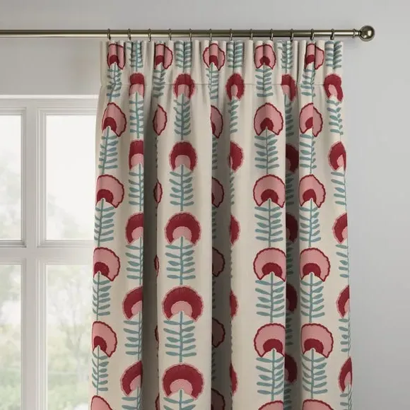 The Made to Measure Curtains feature a retro folk art inspired floral design with premium polycotton composition. The simplified florals in modern symmetrical layout provide charm and colour, while the soft handle fabric offers durable everyday performance. Available with multiple header options including pencil pleat, eyelet, or double pinch pleat, plus lining choices of blackout or thermal for customised light control. Handcrafted to exact measurements, these curtains ensure a perfect fit with polished finish.