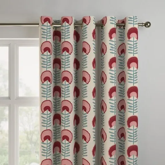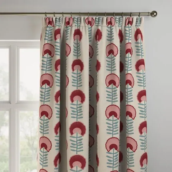 * Premium polycotton composition* Retro, folk art inspired design* Available in a selection of header and lining options* Coordinating Made to Measure and Made to Order items available to purchase separately Add a playful yet elegant touch to your home with the Scandi Floral Made to Measure Curtains. Inspired by retro folk art and Scandinavian design, this fabric brings charm, colour, and a handcrafted feel to any interior. The premium polycotton blend ensures a soft handle with durable, everyday performance, offering the ideal balance of comfort and practicality. The design features simplified florals in a modern, symmetrical layout, perfect for family spaces, cosy bedrooms, or creative living areas. Available in a selection of header types—such as pencil pleat, eyelet, or double pinch pleat—and lining options including blackout or thermal, these curtains can be customised to suit your light and insulation needs. Handcrafted to your exact measurements, they ensure a perfect fit and polished finish. Pair with matching made to order cushion covers or Roman blinds to complete the look. Scandi Floral is ideal for those who love a mix of nostalgia and Nordic style. Please note: If your measured width is over 124cm your curtains will come with a fabric join to provide the full width required.