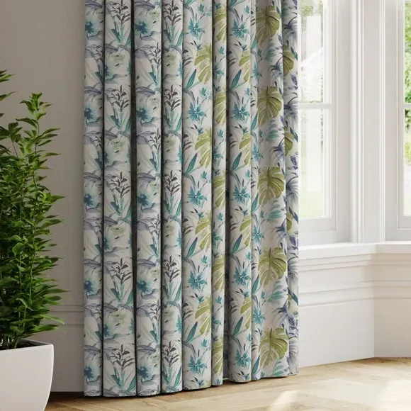 The curtains feature an elegant floral design with vibrant green tones that add natural charm to any space. Made to measure construction ensures a custom fit, while the quality fabric provides excellent light control and privacy. Available in both pinch pleat and pencil pleat styles to suit different hanging preferences. Widths over 124cm include fabric joins to achieve the required coverage.