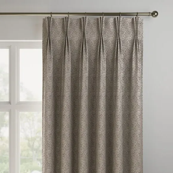 * Made with sustainable materials - 100% recycled polyester* Selection of header types available* Choice of linings options available* Made to your measurements!* Sold as a pair Crafted from high-quality jacquard material, this fabriccombines durability with a luxurious feel. The modern design, featuring a coral reef pattern, adds a captivating and visually appealing element to yourinterior. The design is subtle yet striking, meaning that you can still incorporate it into various interior styles.**Choosing your lining:**Blackout provides minimal light disturbance in your home making it perfect for bedrooms. Thermal helps to keep the warmth in and the cool air out meaning it’s great for family rooms or lounges. Our Standard Lining is perfect if you like the glow of natural light whilst your curtains are closed whilst still maintaining your privacy. Please note: you measure for pinch pleat curtains in the same way as pencil pleat curtains. Please note: If your measured width is over 124cm your curtains will come with a fabric join to provide the full width required.