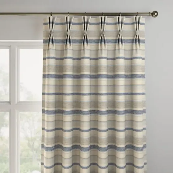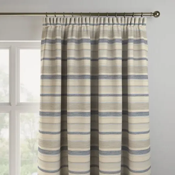 The curtains feature an elegant striped design with custom sizing to fit your windows precisely. Made to measure construction ensures optimal coverage, while the striped pattern adds visual interest to any space. Available with pinch pleat or pencil pleat heading options, and widths over 124cm include fabric joins for full coverage.