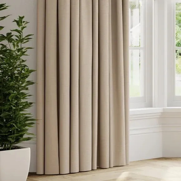 * Modern dry handle textured print* Made from recycled polyester* Available in a selection of header and lining types* Available in a wide selection of colourways* Coordinating Made to Measure and Made to Order items available to purchase separately Upgrade your window look with the Harper Made to Measure curtains, designed with a dry handle textured look for a smooth and soft finish. You can choose from a selection of header types to customise your window treatment to perfection from eyelet headers to pinch pleat and blackout linings to thermal. These Harper curtains are available in a wide range of colour options to suit your aesthetic preferences, these curtains effortlessly elevate any living space. Good things come to those who coordinate, so why not shop the Harper Made to Measure and Made to Order range for a complete look? Please note: If your measured width is over 124cm your curtains will come with a fabric join to provide the full width required.