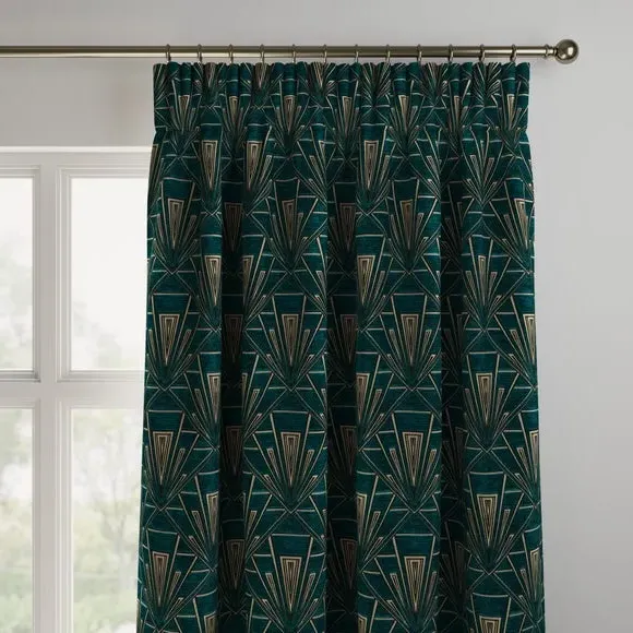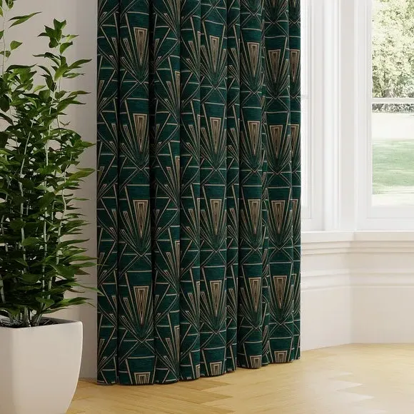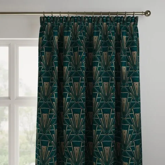The curtains feature an elegant 1920s inspired design with sophisticated detailing. The made-to-measure service ensures a precise fit for your windows, while the pinch pleat heading provides structured draping. Fabric joins are included for widths over 124cm to achieve the full required width.