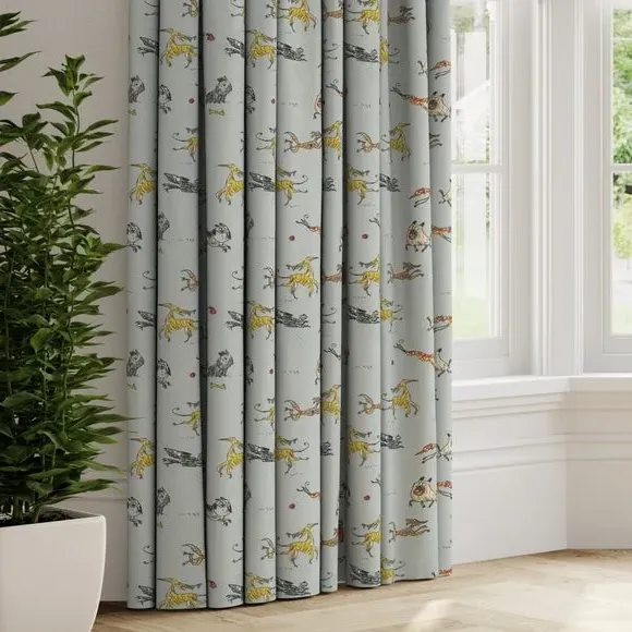 These Happy Hounds made to measure curtains features a fun and quirky animated dog design. This 100% cotton, web exclusive design can't be found in stores!**Choosing your lining:*** Blackout provides minimal light disturbance in your home making it perfect for bedrooms.* Thermal helps to keep the warmth in and the cool air out meaning it’s great for family rooms or lounges.* Our Standard Lining is perfect if you like the glow of natural light whilst your curtains are closed whilst still maintaining your privacy.**Online Only**: This product is only available to order online. Our expert virtual consultants can provide advice on measuring/fitting and style tips and our free samples can be ordered online to be delivered straight to your home to help you choose a fabric that's right for you. Once you're happy, simply place your order online and we'll do the rest. Please note: If your measured width is over 124cm your curtains will come with a fabric join to provide the full width required.