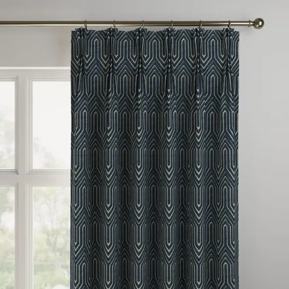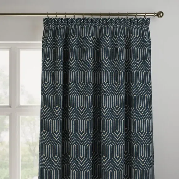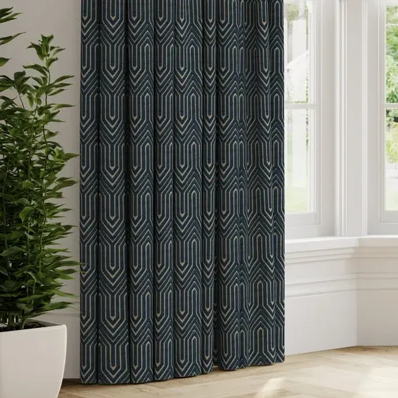 * Made with sustainable materials - 100% recycled polyester* Selection of header types available* Choice of linings options available* Made to your measurements!* Sold as a pair Unwind in coastal-inspired tranquillity with this 100%cotton fabric, featuring a calming coastal design that adds a touch of serenityto your interior decor. The navy colour palette brings a sense of depth andsophistication, evoking a seaside ambiance.**Choosing your lining:**Blackout provides minimal light disturbance in your home making it perfect for bedrooms. Thermal helps to keep the warmth in and the cool air out meaning it’s great for family rooms or lounges. Our Standard Lining is perfect if you like the glow of natural light whilst your curtains are closed whilst still maintaining your privacy. Please note: you measure for pinch pleat curtains in the same way as pencil pleat curtains. Please note: If your measured width is over 124cm your curtains will come with a fabric join to provide the full width required.