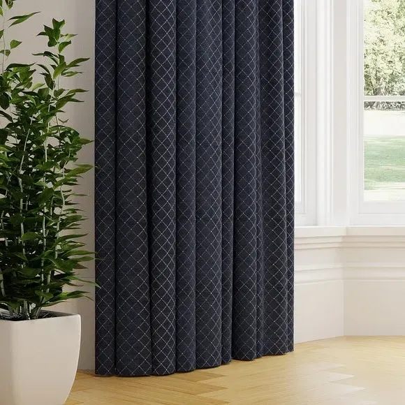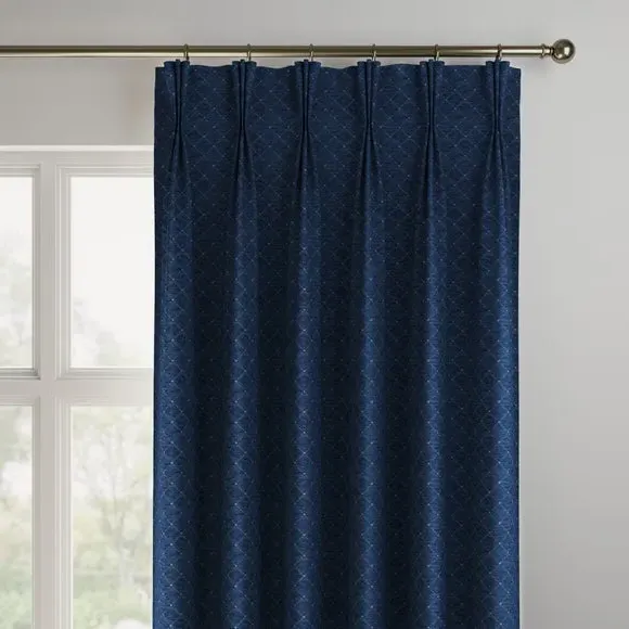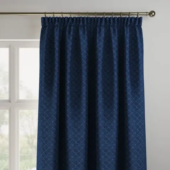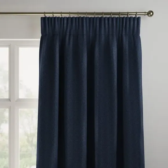 The curtains offer elegant simplicity with their clean design and custom sizing options. Featuring pinch pleat construction, they provide tailored fit and professional appearance while maintaining easy measurement guidelines. The navy fabric adds sophisticated color depth, and widths over 124cm include fabric joins to achieve full coverage requirements.