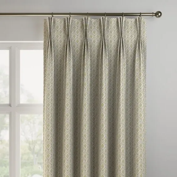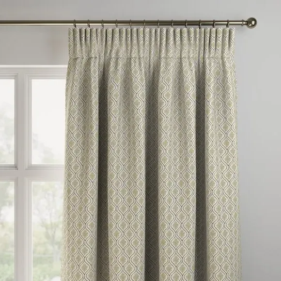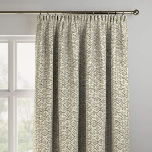 * Geometric leaf design* Made from a cotton and linen blend* Available in a selection of header and lining types* Coordinating Made to Measure and Made to Order items available to purchase separately The Calvia Made to Measure curtain features a stunning geometric leaf printed design on a cotton and linen blend. Personalise your window treatment with our versatile range of header and lining options, from an eyelet header to pinch pleat and blackout lining or thermal, ensuring a bespoke touch that suits your taste. The Calvia curtains are available in a choice of two colourways for you to choose from. Shop the Calvia Made to Measure and Made to Order range to give your home a finished and coordinated look.**Please note: **You measure for pinch pleat curtains in the same way as pencil pleat curtains.**Please note: **If your measured width is over 124cm your curtains will come with a fabric join to provide the full width required.