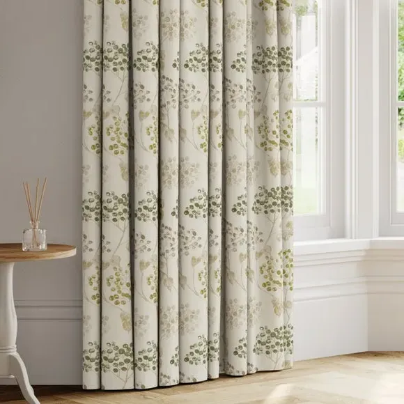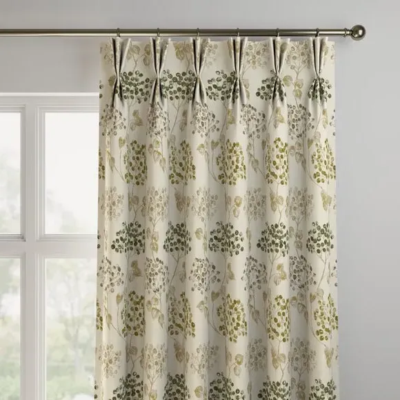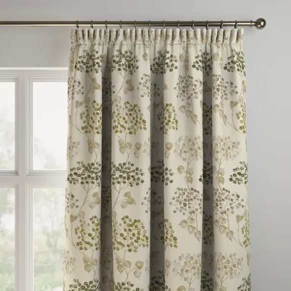 The curtains feature an elegant floral design with custom sizing to fit your windows precisely. Each panel offers pinch pleat or pencil pleat heading options, while the olive colorway adds natural warmth to your space. The made-to-measure service ensures proper fit, and panels wider than 124cm include fabric joins for full coverage.