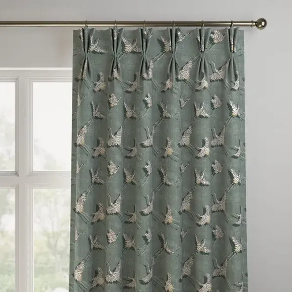 The curtains feature an elegant bird design with custom sizing to fit your windows precisely. Each panel offers pinch pleat or pencil pleat heading options, while the printed olive fabric adds natural charm to any space. The made-to-measure service ensures proper fit, and panels over 124cm width include fabric joins for full coverage.