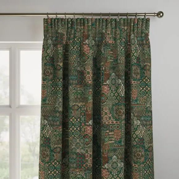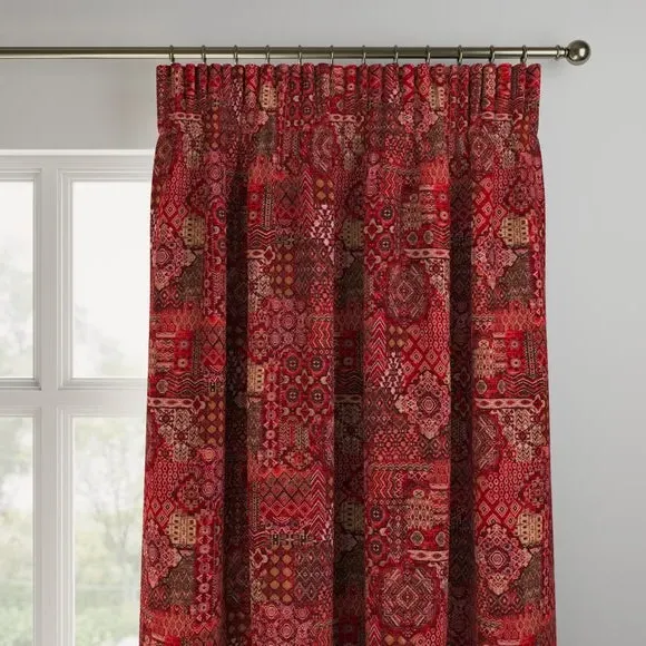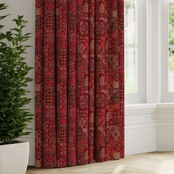 * Durable Polyester Composition* Eyecatching patchwork design* Available in a selection of header and lining options* Coordinating Made to Measure and Made to Order items available to purchase separately Add warmth and global-inspired detail to your home with the Persia Made to Measure Curtains. Crafted from durable polyester, this rustic patchwork design draws inspiration from traditional textiles, offering an eclectic mix of pattern and earthy tones. Ideal for boho or heritage-inspired interiors, the richly detailed fabric brings instant character to any space. Tailor the fit and finish with a range of header and lining options, and complete the look with coordinating made to order items. Please note: If your measured width is over 124cm your curtains will come with a fabric join to provide the full width required.