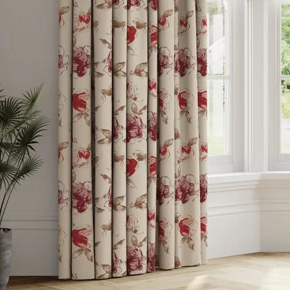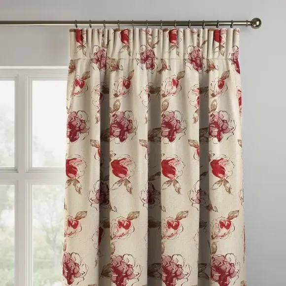 The curtains feature an elegant floral design with custom sizing to fit your windows precisely. Made from woven fabric, they offer both style and functionality with pinch pleat or pencil pleat hanging options. The made-to-measure service includes expert consultation to guide you through the process. For widths over 124cm, fabric joins are added to achieve the required coverage.