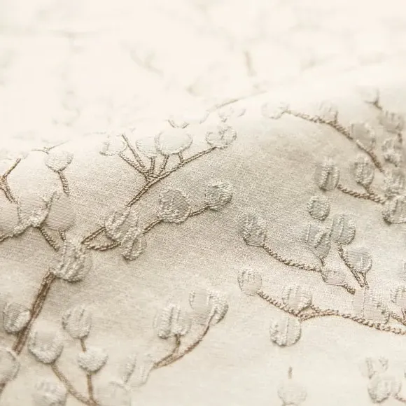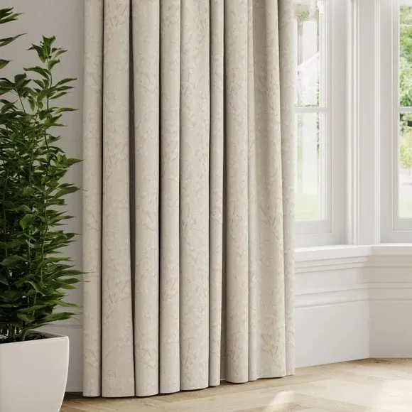 The curtains feature a modern berry trail jacquard design with custom measurements tailored to your windows. Multiple header types and lining options provide versatility, while the fabric construction ensures durability and style. Sold as a pair with professional finishing, and widths over 124cm include fabric joins for full coverage.