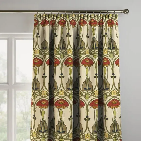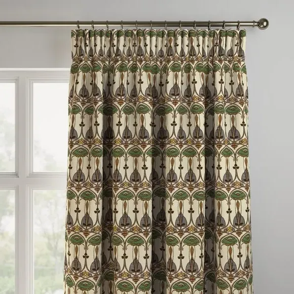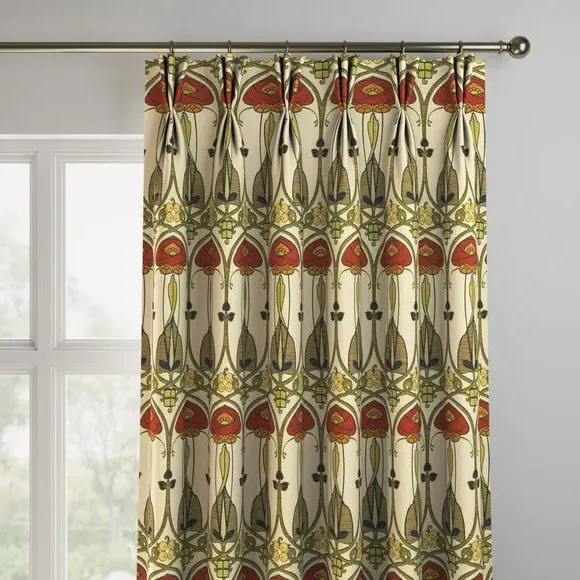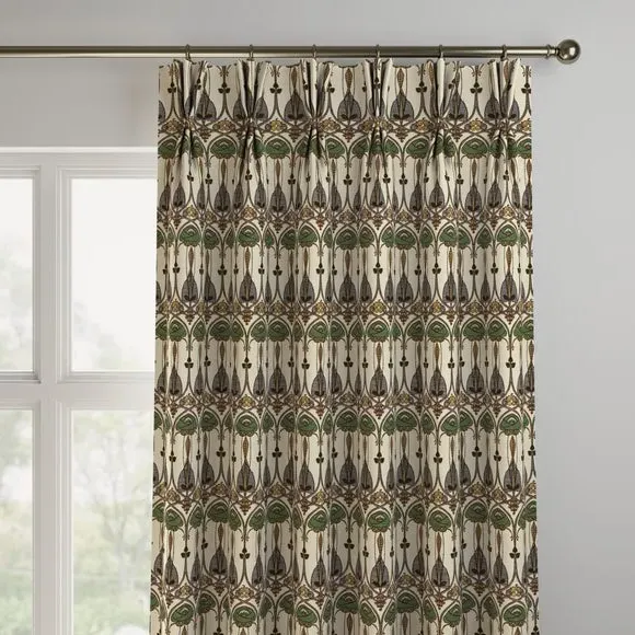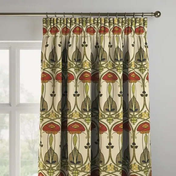 The curtains feature an embroidered design with custom sizing to fit your windows precisely. Each panel is crafted with pinch pleat heading for structured hanging, while the fabric construction ensures durability. The made-to-measure service includes expert consultation for accurate fitting, and panels over 124cm width include fabric joins for full coverage.