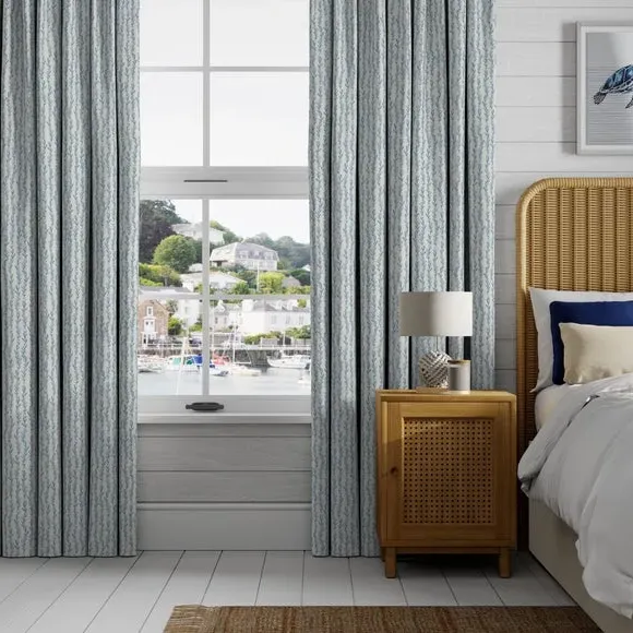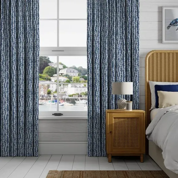 * Selection of header types available* Made to your individual measurements* Dainty leaf print* Made from 100% cotton* Available in another colourway* Coordinating items available to purchase separately Add a touch of sophistication to your windows with these Tide Made to Measure curtains, featuring a selection of header types tailored to your preferences. Indulge in the luxury of customisation as each curtain is expertly made to your individual measurements, ensuring a perfect fit for your windows. The timeless design is bound to add an elegant look to your home, while the use of high quality 100% cotton ensures both durability and a luxurious feel. Why not shop the coordinating Tide Made to Measure and Made to Order items available to purchase separately, for a complete look? Our Web Exclusive Coastal range features a variety of unique designs, across curtains, tiebacks, cushion covers and more, all made on a 100% cotton fabric base. The 100% natural fibres like cotton are kinder to the environment, as well as to our skin, being naturally hypoallergenic, meaning they are ideal for sensitive and allergy-prone skin, as well as having unique anti-bacterial qualities. You can feel confident that our Coastal range will be gentle to the environment, and to those who may sit close. Please note: If your measured width is over 124cm your curtains will come with a fabric join to provide the full width required.