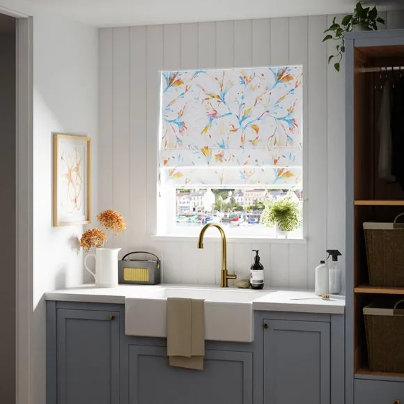 * Choose from 3 linings* Select your fitting type* Pick a side for the operating chain Bring the seaside home with Seaweed roman blinds. Calming coastal design, 100% cotton, and made in the UK. Dry clean only.**Choosing your lining:*** Blackout provides minimal light disturbance in your home making it perfect for bedrooms.* Thermal helps to keep the warmth in and the cool air out meaning it’s great for family rooms or lounges.* Our Standard Lining is perfect if you like the glow of natural light whilst your curtains are closed whilst still maintaining your privacy.**Choosing your fitting type:*** Inside the recess: this gives a tidy, snug finish as it’s made to fit your window exactly.* Outside the recess: this option is great if you don’t want the blind to be visible from the outside when it’s drawn up.**Choosing which side you’d like the operating chain:*** Think about where your blind will be situated and what furniture may be near it – choose the side that is easier for you to access.**Child Safety:**We add clips to the back of our roman blinds to attach the cords to the fabric. They also double up as a child safety feature. If pressure is exerted the clips will detach to prevent the risk of strangulation. If the clips detach accidentally during normal use, they can be easily re-clipped back into place. Please note: If your measured width is over 130cm your blinds may come with a fabric join to provide the full width required.
