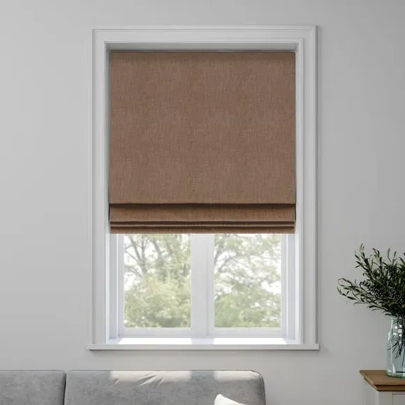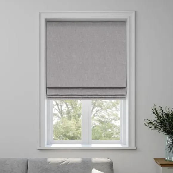 * Choose from 3 linings* Select your fitting type* Pick a side for the operating chain Made from 100% recycled polyester, this timeless jacquard fabric adds both a stylish and sustainable touch to your home. Please note this fabric is dry clean only.**Choosing your lining:*** Blackout provides minimal light disturbance in your home making it perfect for bedrooms.* Thermal helps to keep the warmth in and the cool air out meaning it’s great for family rooms or lounges.* Our Standard Lining is perfect if you like the glow of natural light whilst your curtains are closed whilst still maintaining your privacy.**Choosing your fitting type:*** Inside the recess: this gives a tidy, snug finish as it’s made to fit your window exactly.* Outside the recess: this option is great if you don’t want the blind to be visible from the outside when it’s drawn up.**Choosing which side you’d like the operating chain:*** Think about where your blind will be situated and what furniture may be near it – choose the side that is easier for you to access.**Child Safety:**We add clips to the back of our roman blinds to attach the cords to the fabric. They also double up as a child safety feature. If pressure is exerted the clips will detach to prevent the risk of strangulation. If the clips detach accidentally during normal use, they can be easily re-clipped back into place. Please note: If your measured width is over 130cm your blinds may come with a fabric join to provide the full width required.
